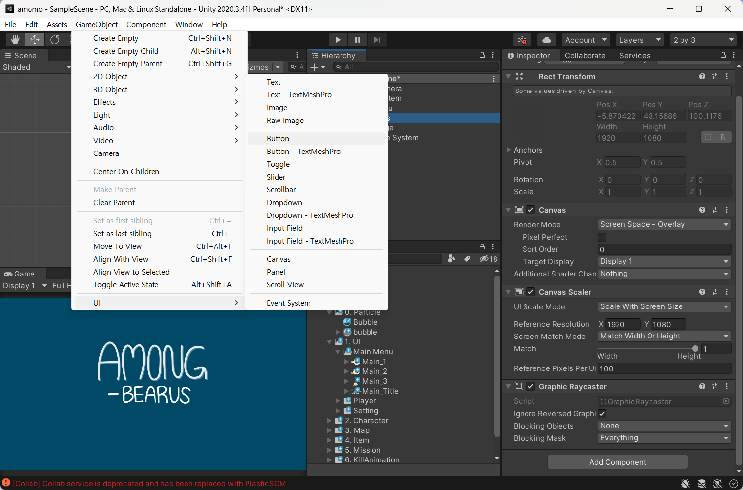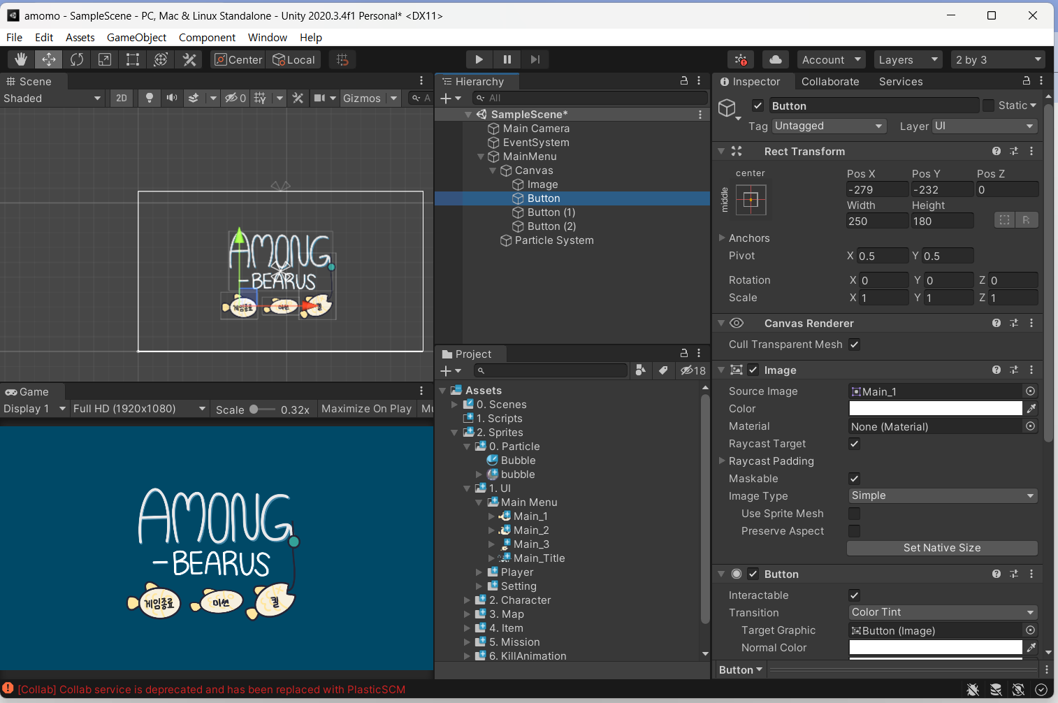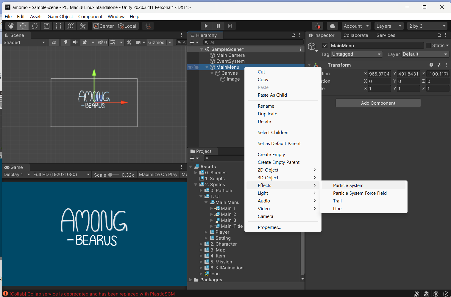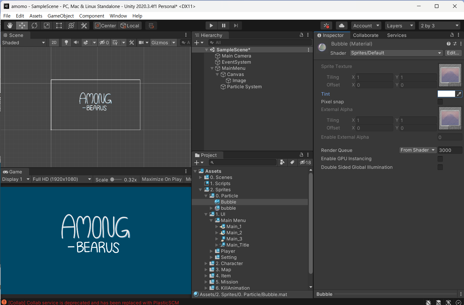 나는 파티클이 보이지 않는데 이건 차차 해결해 보겠다... 자꾸 발생하는 오류 때문인 것 같기도 하고.. 일단 교육 영상의 화면으로 대체한다.