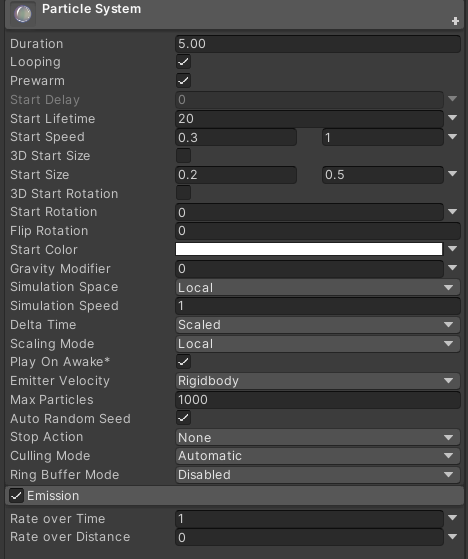만든 입자의 여러가지 변경점들을 수정해주면 메인화면은 끝이다.
