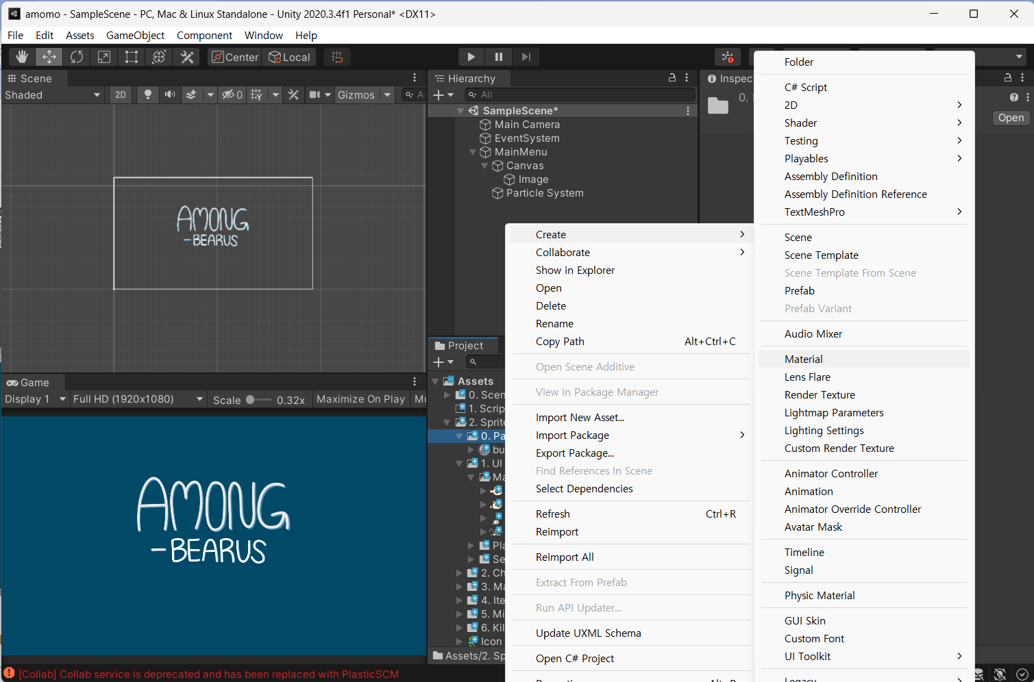 하지만 여기선 그냥 끌어오는 것으로 사용할 수 없다. 그래서 새로운 meterial을 만들어준다.
