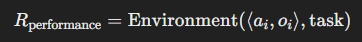 - R_performance: 에이전트가 주어진 환경에서 얼마나 잘 수행했는지를 평가하는 지표.