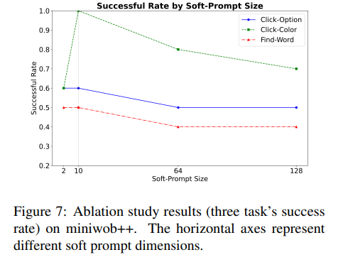 Soft Prompt의 차원 수에 따라 성공률도 많이 변화하고, 차원이 너무 커지면 학습하는데 시간이 오래 걸려 최적화 속도가 느려지고, 너무 작으면 충분한 정보를 담지 못해 성능이 저하된다.