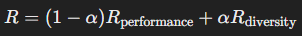 ✅ 두 가지 보상(성능 + 다양성)을 조합하여 탐색과 활용을 균형 있게 조정.