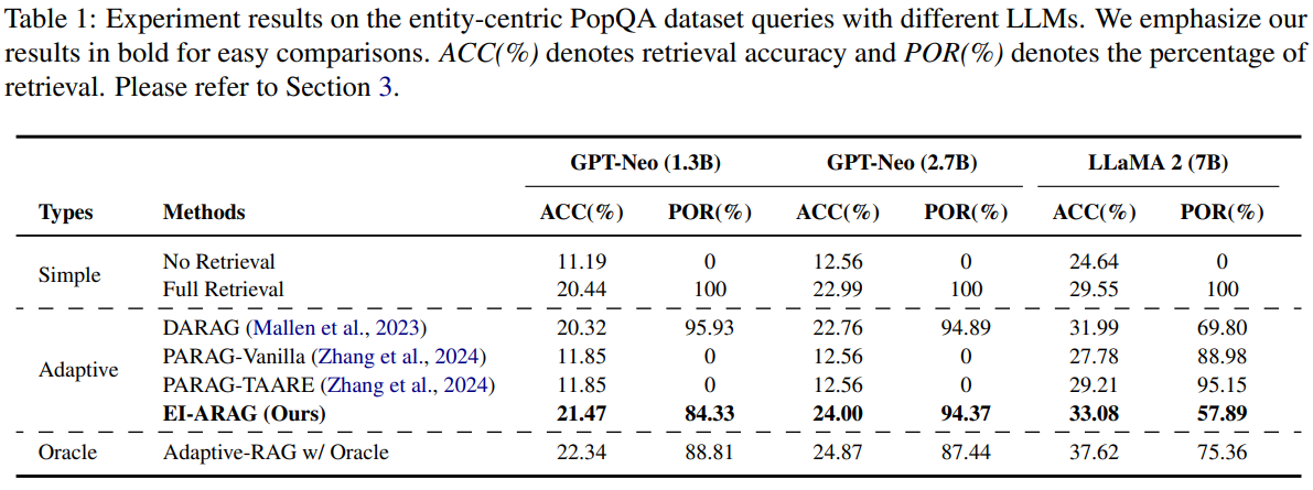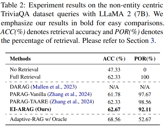 - EI-ARAG는 이런 불필요한 검색을 수행하지 않으므로, 더 높은 정확도를 보임.