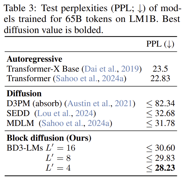 그렇기에 이번 Block Diffusion이 나왔고 명확한 성능 차이를 보여줍니다.
