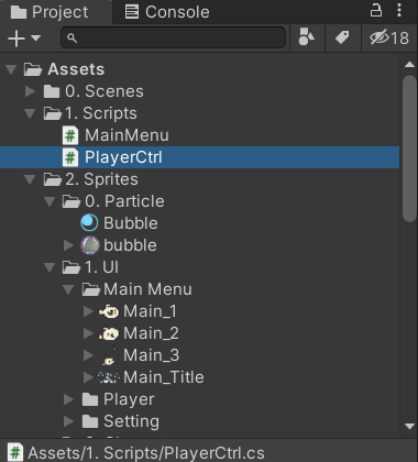 저번과 같이 캐릭터를 움직이기 위해 스크립트 C#파일을 만들어 캐릭터에 넣어준다.