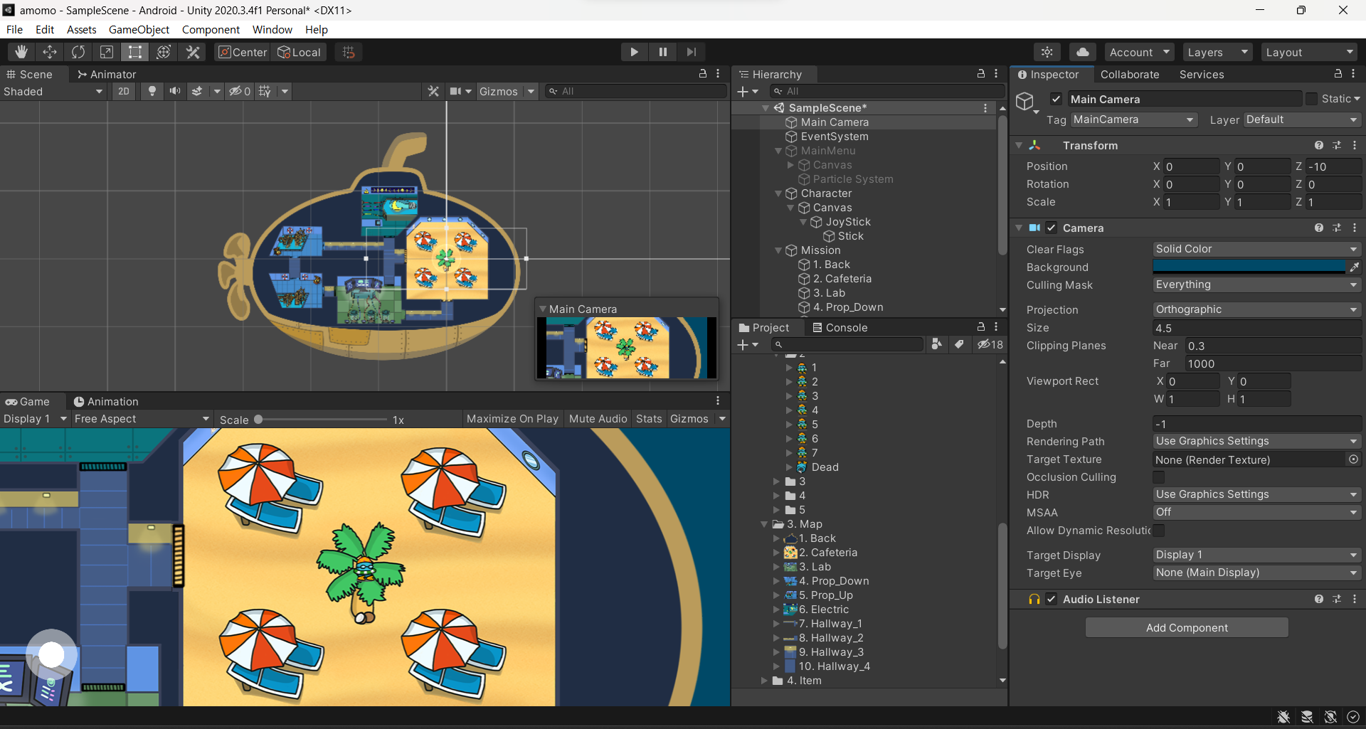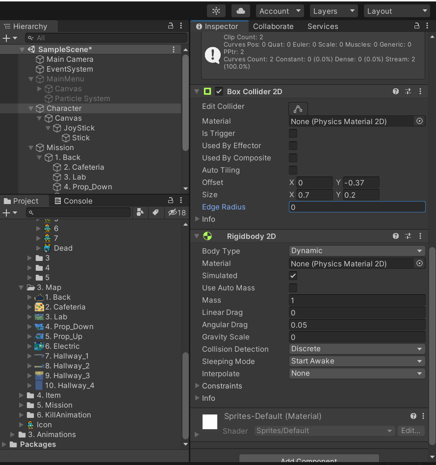 맵 크기를 캐릭터 크기랑 생각해서 만들어야 하고, 메인 카메라도 보는 범위가 너무 넓어서 4.5로 줄여줬따.