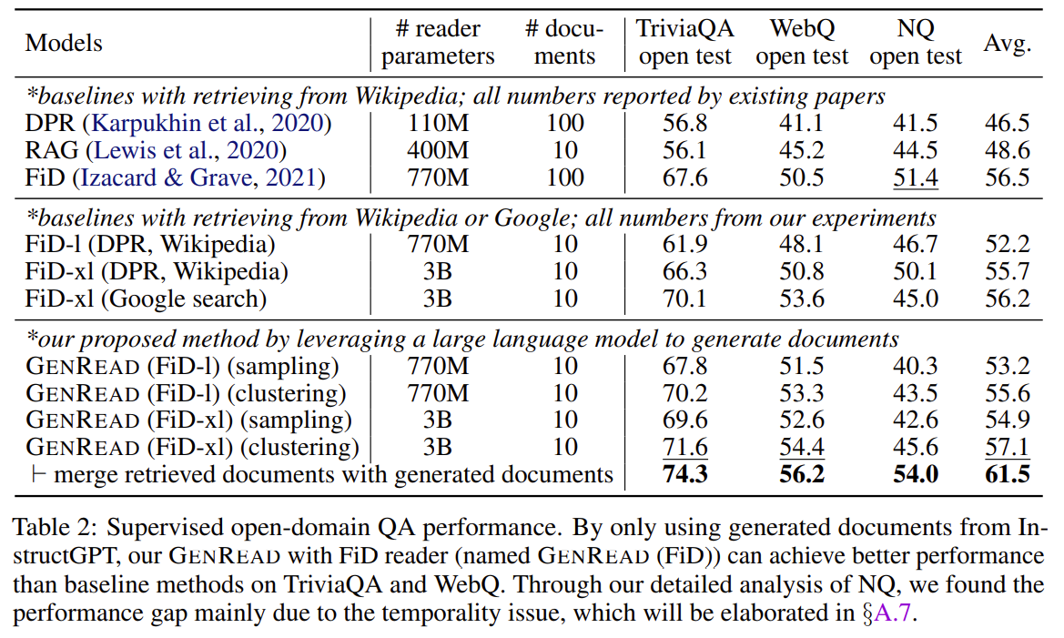 - GENREAD는 기존 retrieve-then-read pipeline을 generate-then-read 방식으로 전환한 최초의 시도