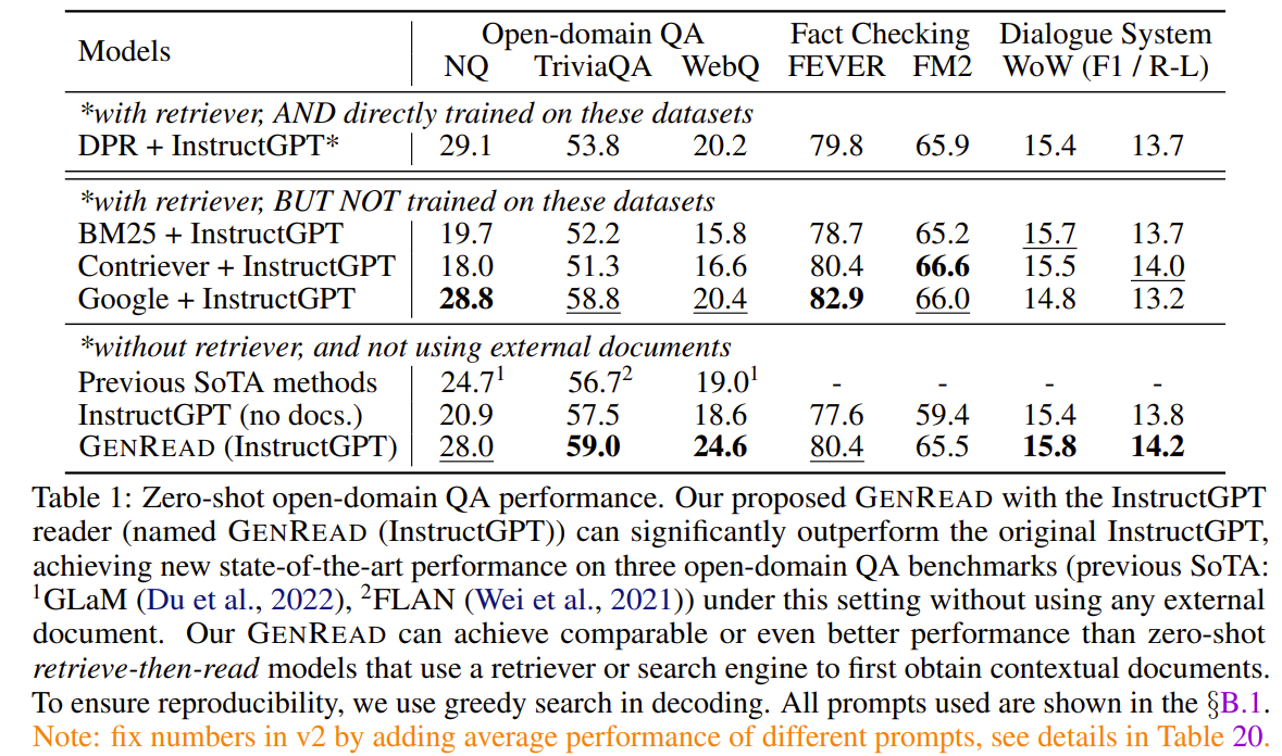 검색기를 생성기로 대체하여 GenRead를 달성한다!