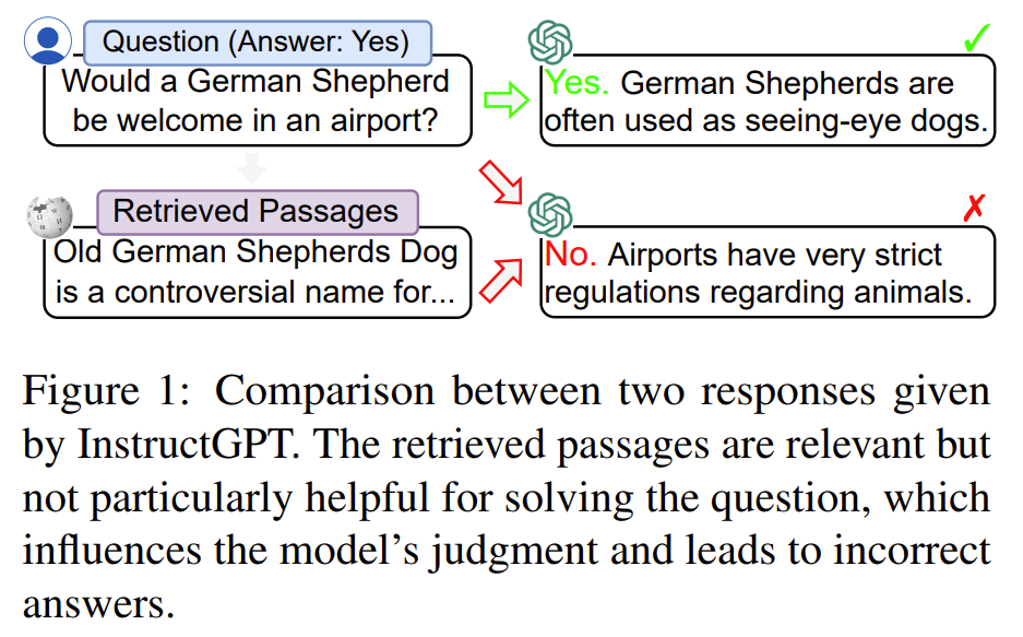 검색된 페세지가 오히려 정답에 악영향을 끼쳤다.