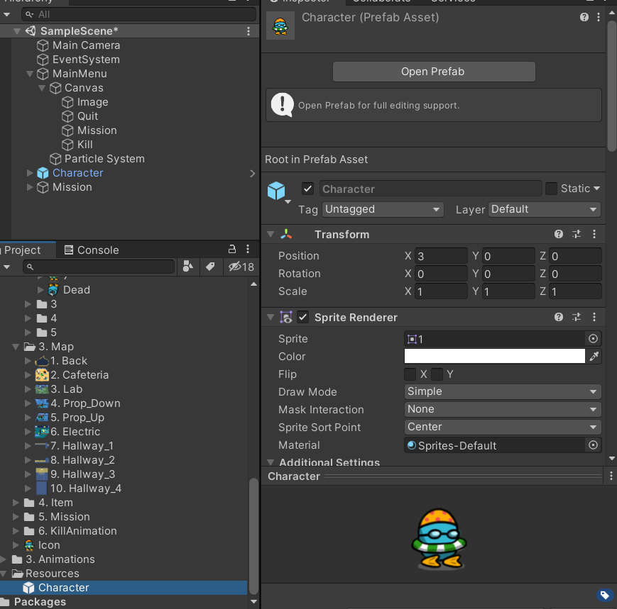 그리고 원래 있던 캐릭터는 지워준다.