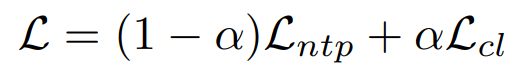 | loss 설계 | NTP + contrastive loss 조합 |