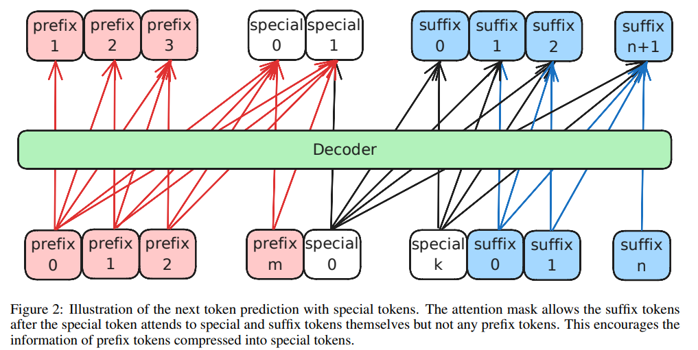 prefix의 의미는 special 토큰에 저장이 되고, suffix는 special 토큰만 확인하고 decoding을 진행하여 압축된 정보만으로 생성을 진행하도록 학습합니다.