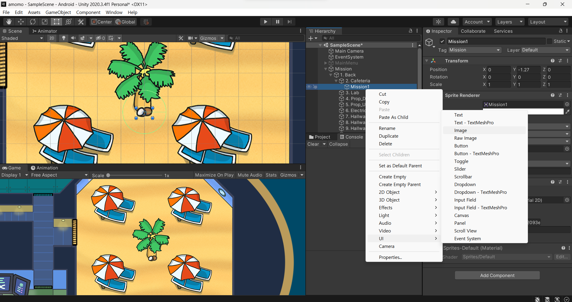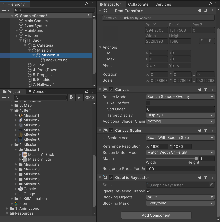 Mission1 스크립트는 hierachy의 Mission1에 집어넣는다.