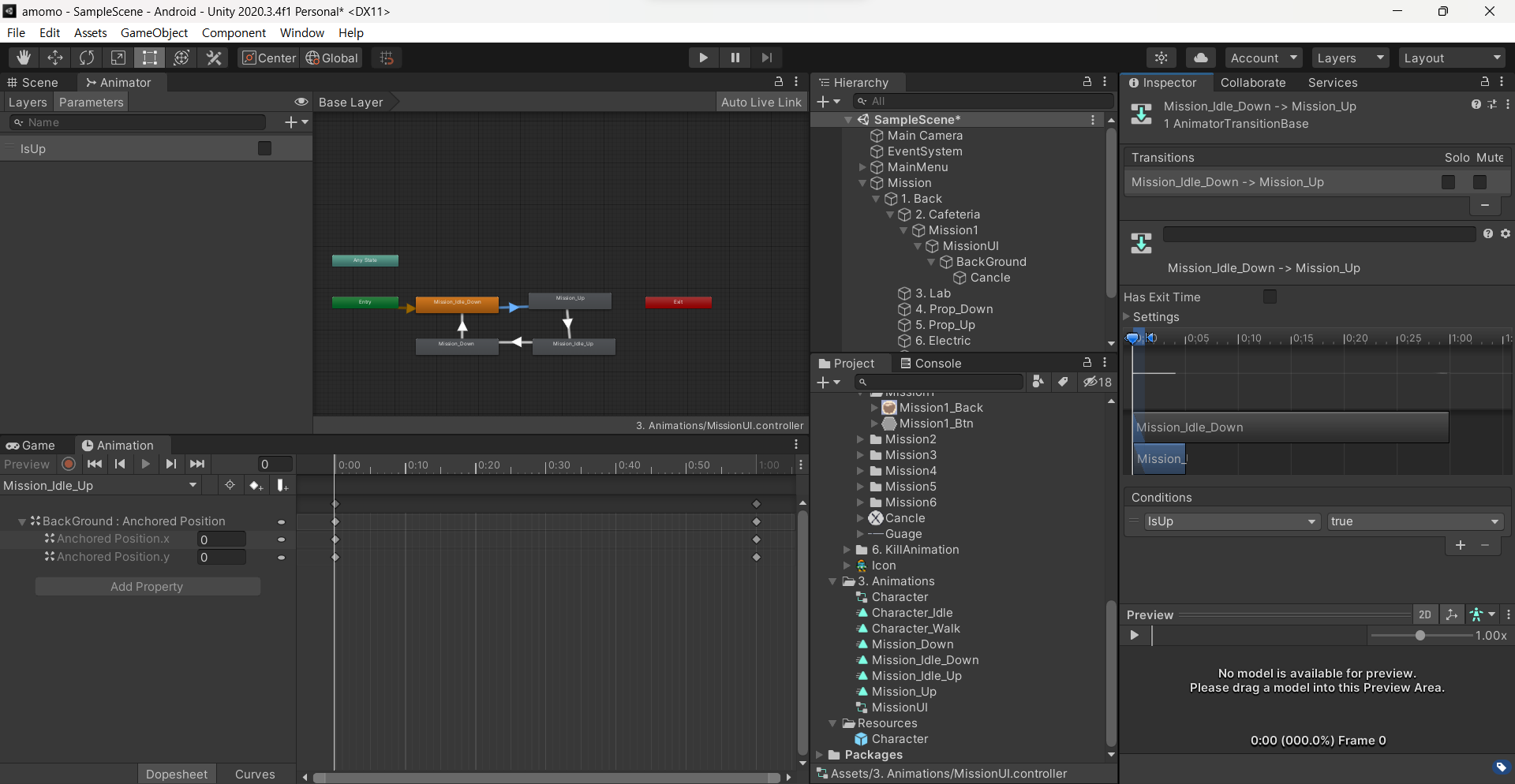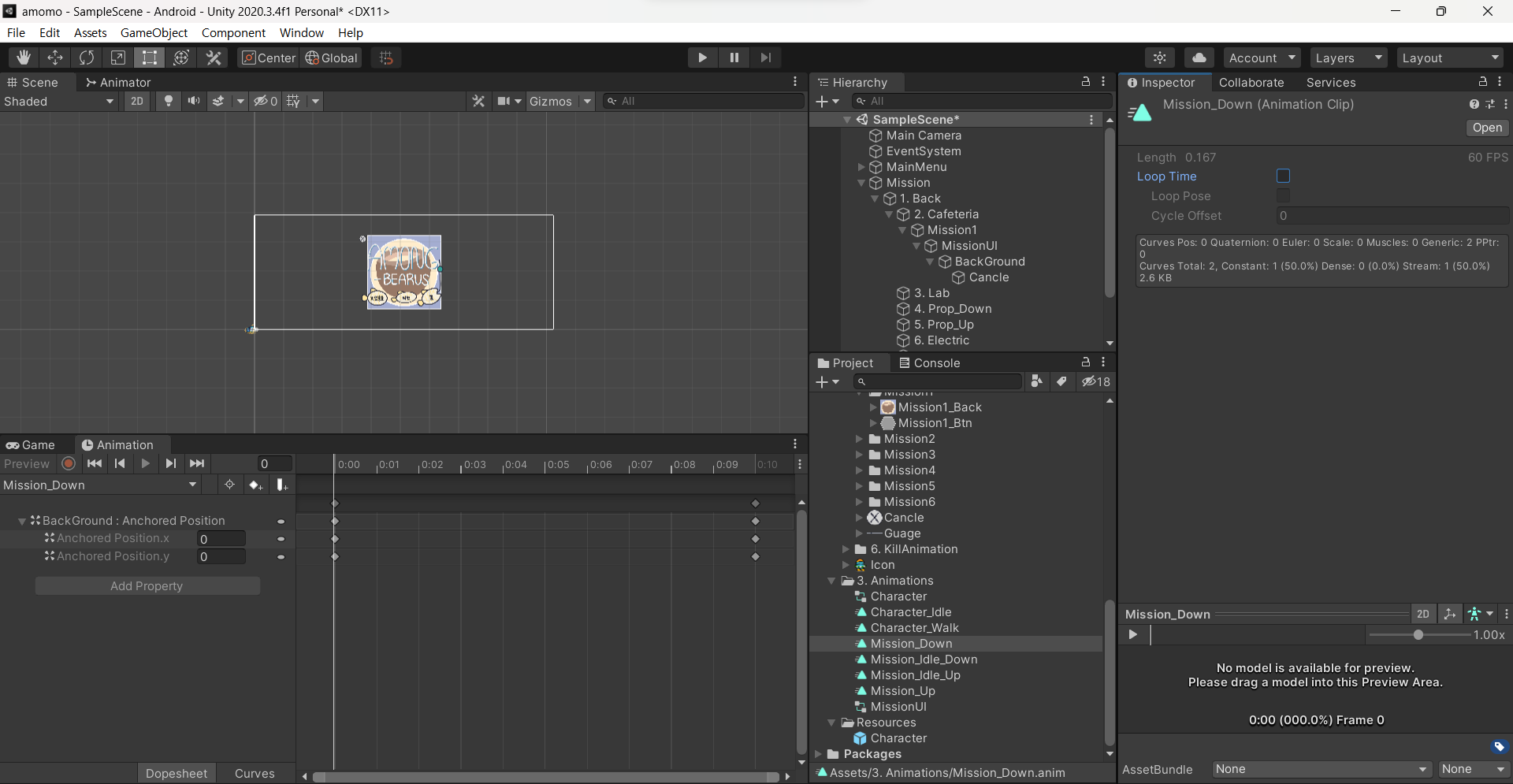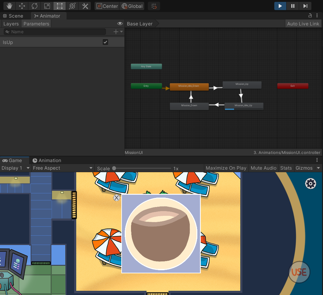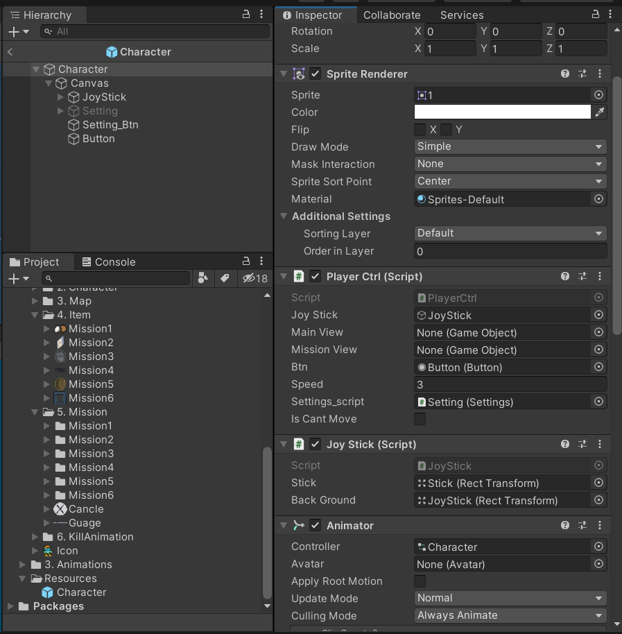 미션을 눌렀을 때 나오는 애니메이션은 캐릭터 안에 버튼을 만들 것이다.