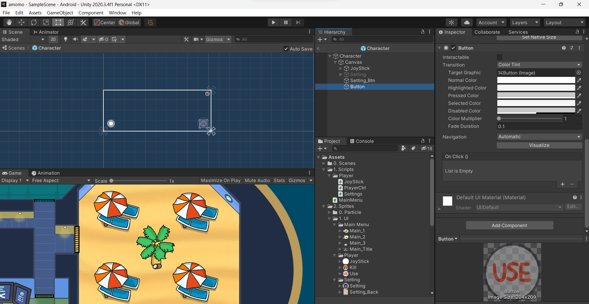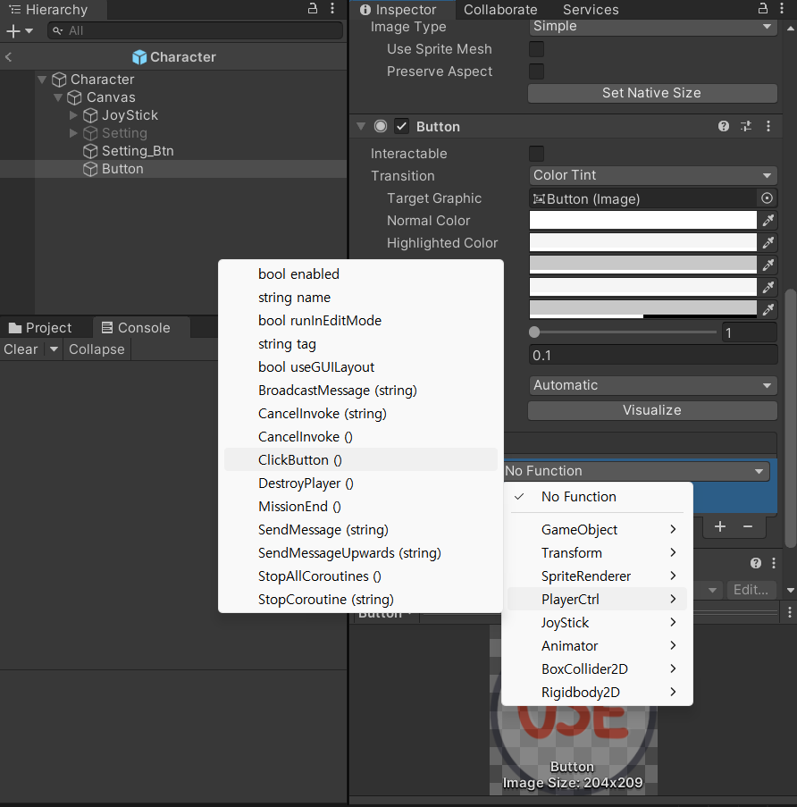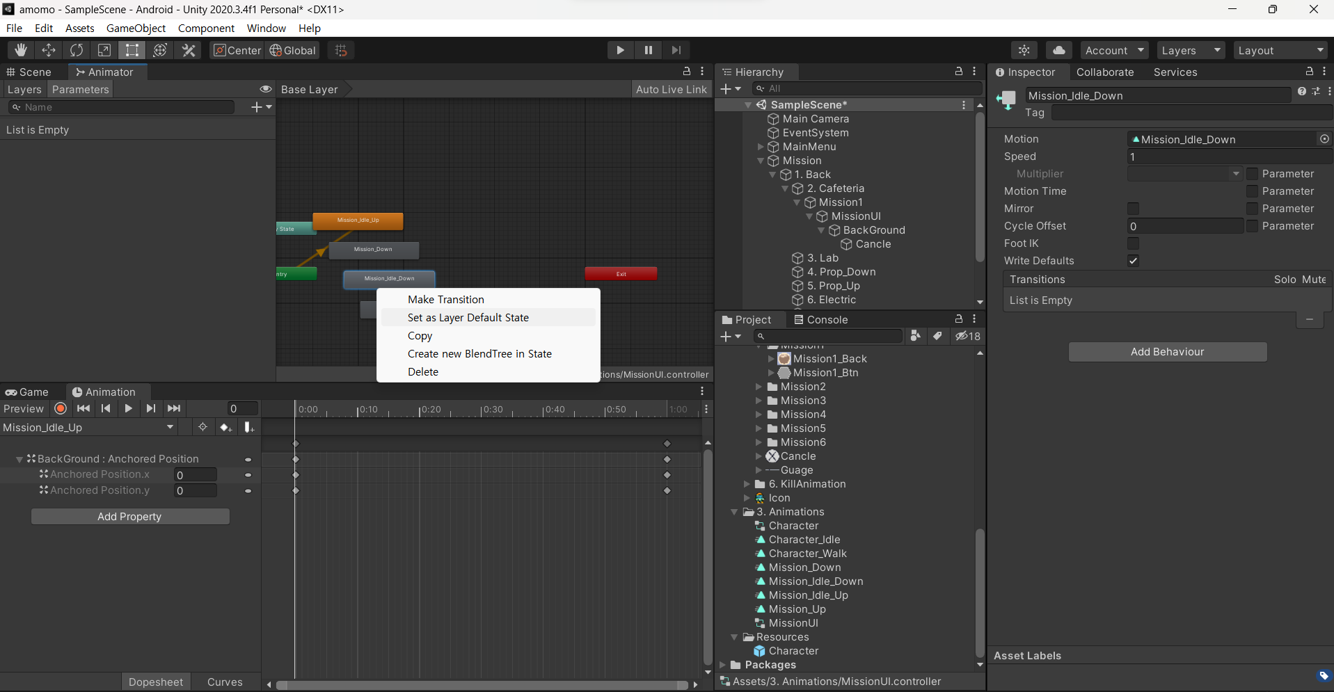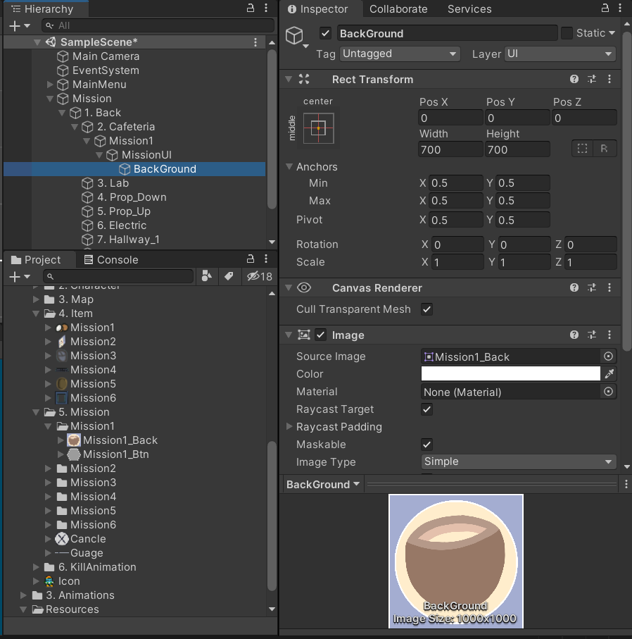 미션을 눌렀을 때 나오는 애니메이션은 캐릭터 안에 버튼을 만들 것이다.