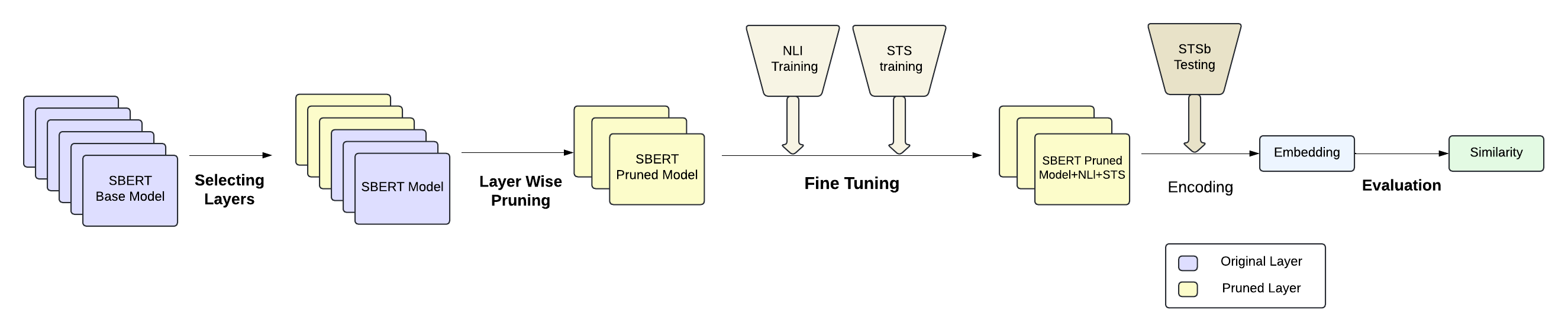 This study examines the effectiveness of layer pruning in creating efficient Sentence BERT (SBERT) models. Our goal is to create smaller sentence embedding models that reduce complexity while maintaining strong embedding similarity. We assess BERT models l