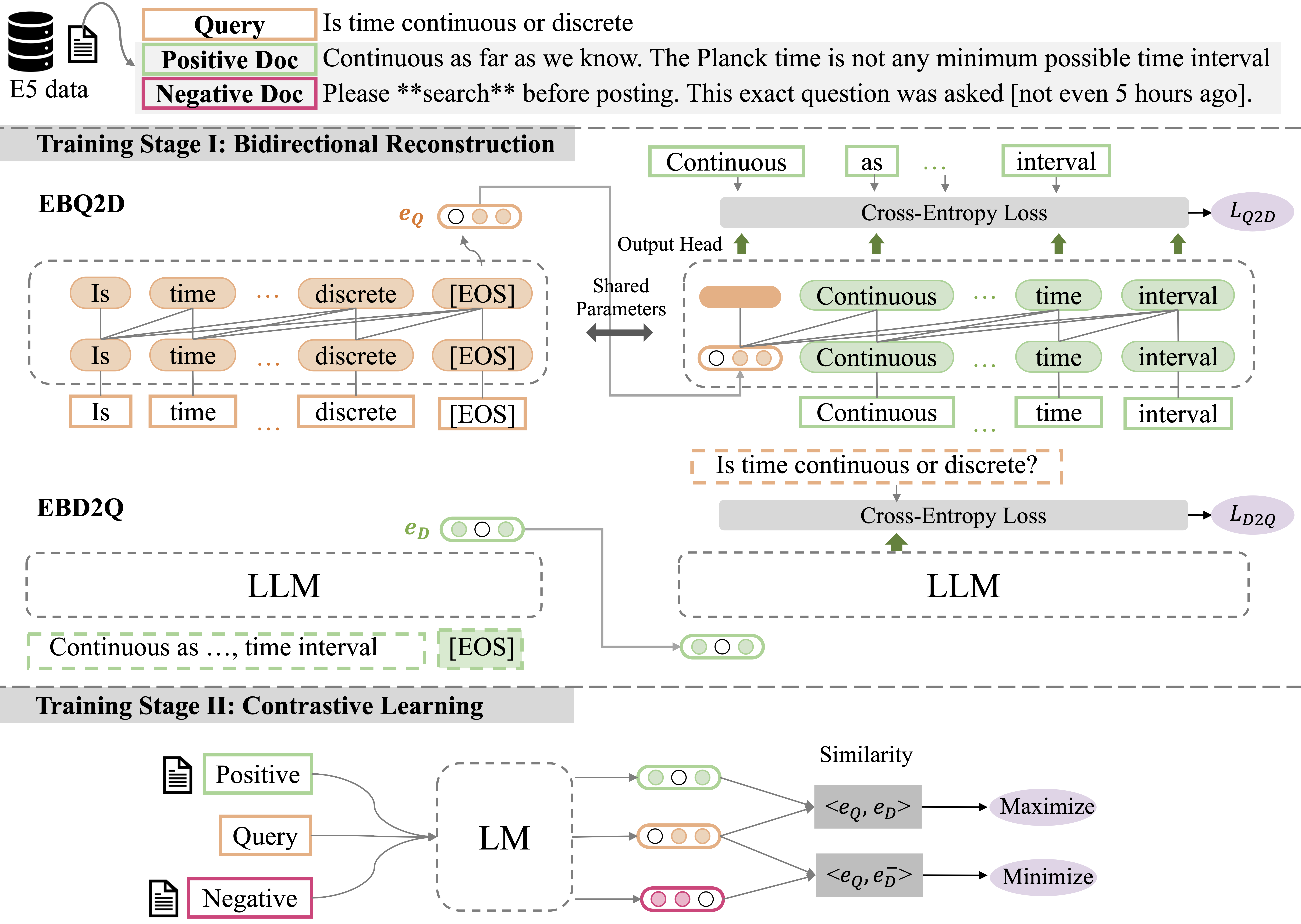 - 최상단 모듈 한글 도큐스트링: Stage I 대비 Stage II 목적(하드 네거티브 기반 감독/대조 학습)과 전체 흐름 단계별 정리.