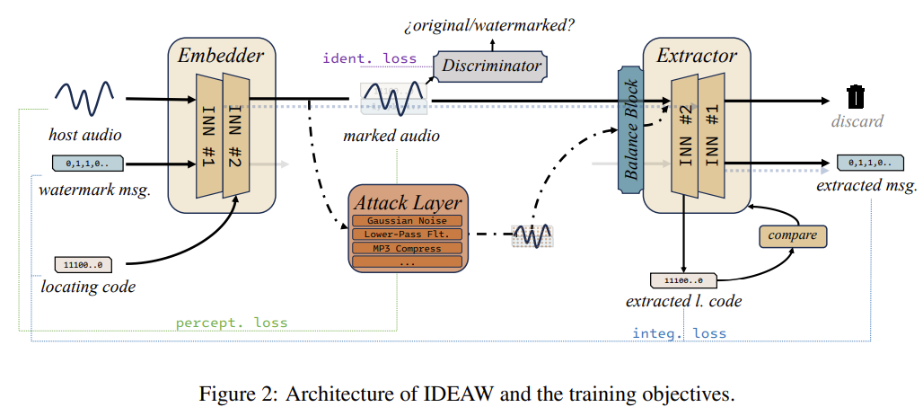 - 생성단 내장 워터마킹: TTS/음악 생성 모델의 스펙트럼 디코더에 INN-hook을 결합해 post-hoc 대비 용량/강건성↑.