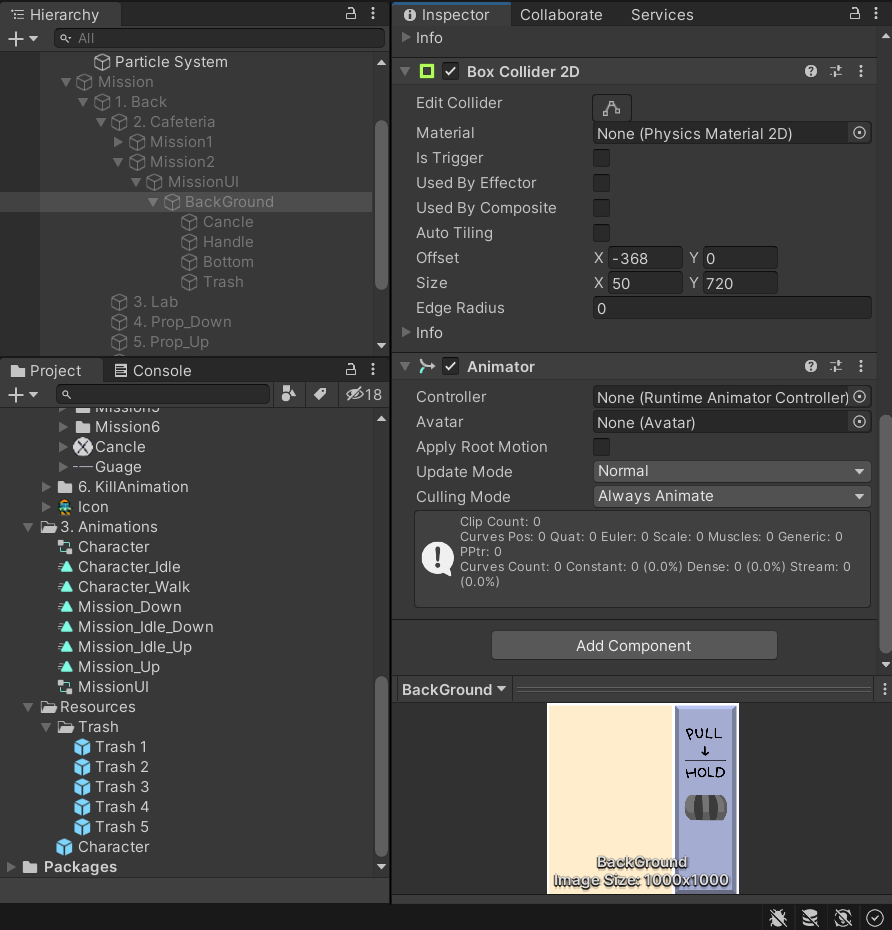 이제 쓰레기가 내려가는 모션을 만든다.