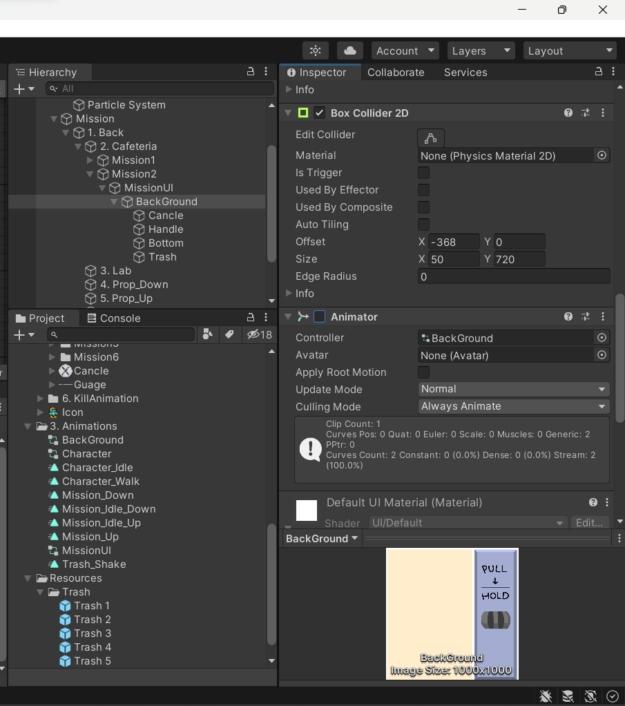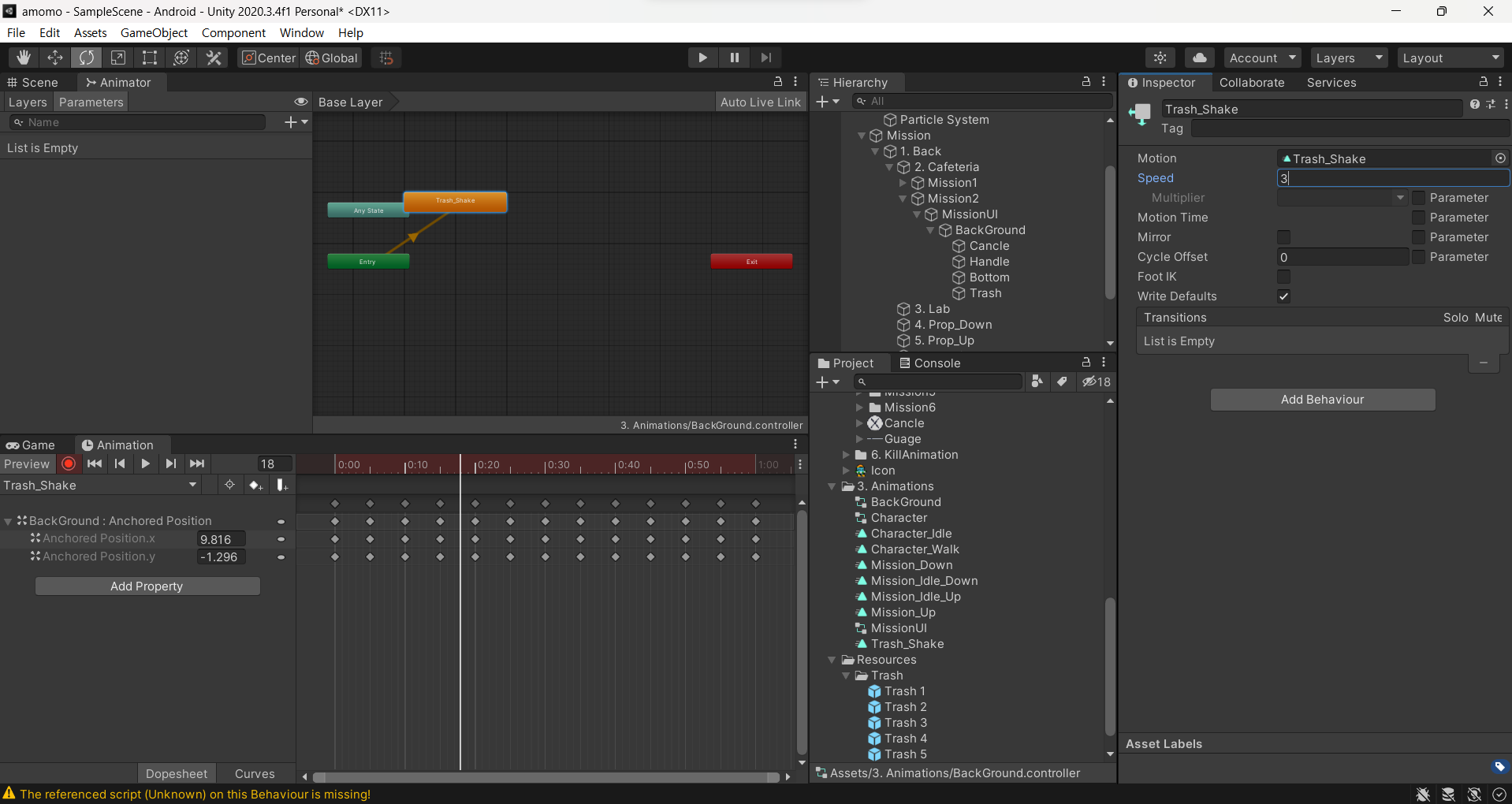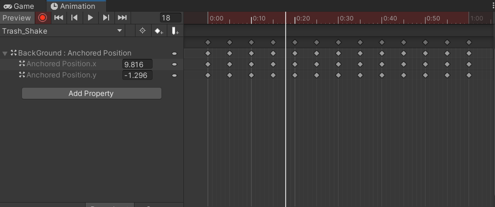 그리고 애니메이션도 Trash_Shake 이름으로 추가해준다.