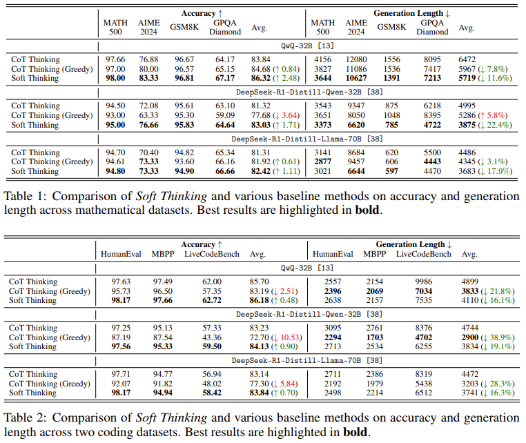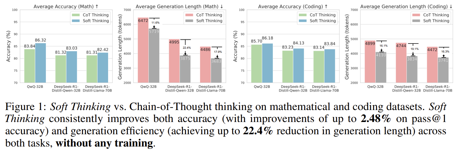 Soft Thinking은 분포 전체를 보존한다는 점이 핵심.