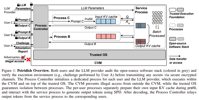 per-user process의 메모리에 접근할 수 없다. - per-user process가 가진 프롬프트 텍스트와 input KV cache는 완전히 private.