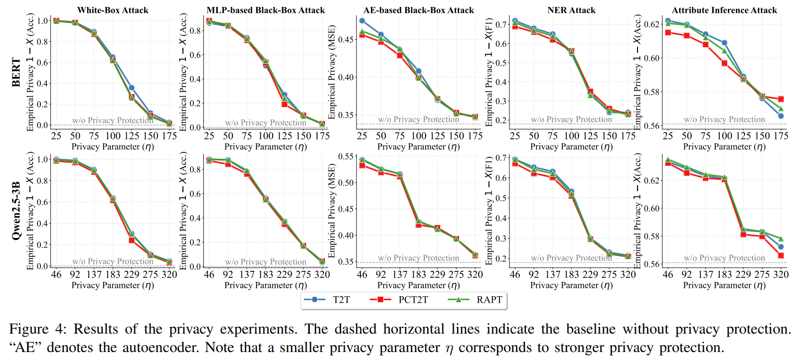| No Protection (upper bound) | 프라이버시 보호 없음 → 성능 최고 |