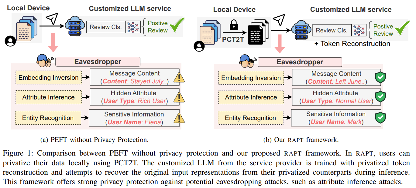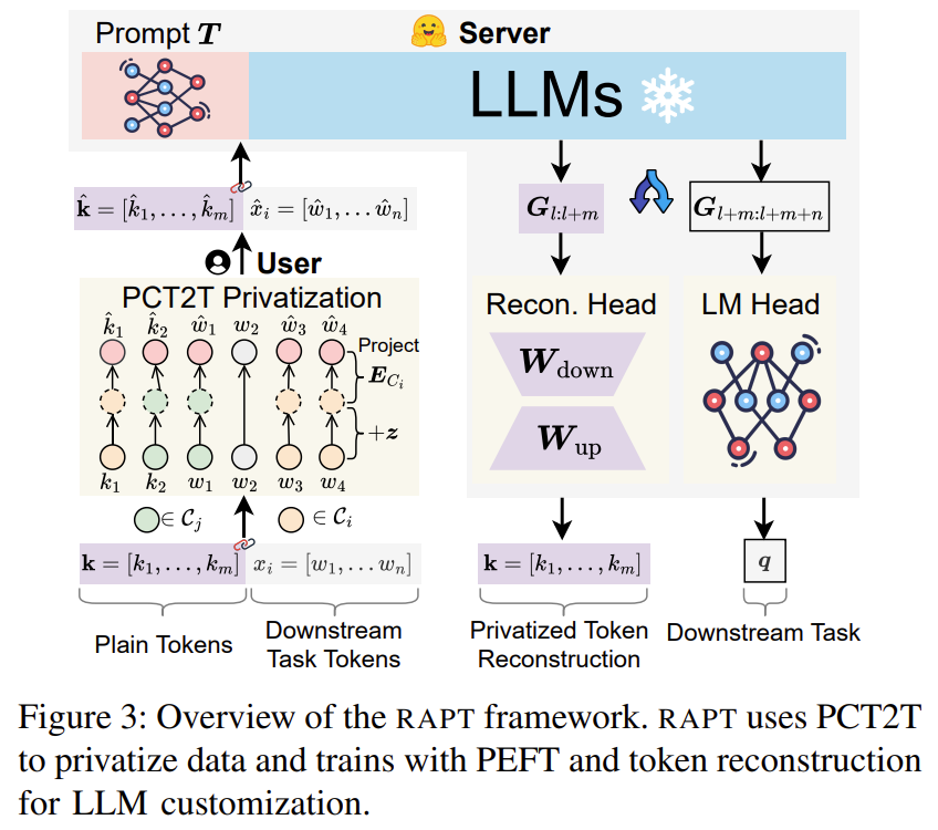 - RAPT: Privatized 입력에 대해 PEFT를 fine-tuning하는 전체 framework
