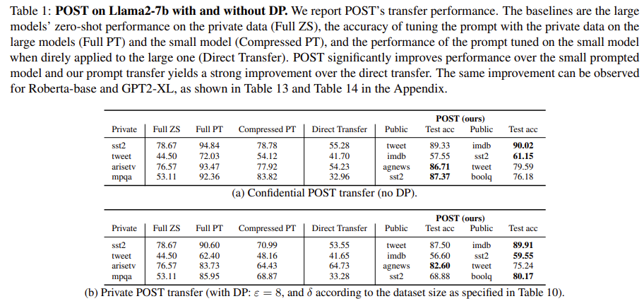 | 요약적 해석 | POST는 "작은 모델에서 private prompt를 학습 → public data로 큰 모델로 이전" 하는 구조를 확립하여 soft prompt tuning의 가장 큰 문제인 비용, 프라이버시, transfer 불가 문제를 모두 해결한 프레임워크. |