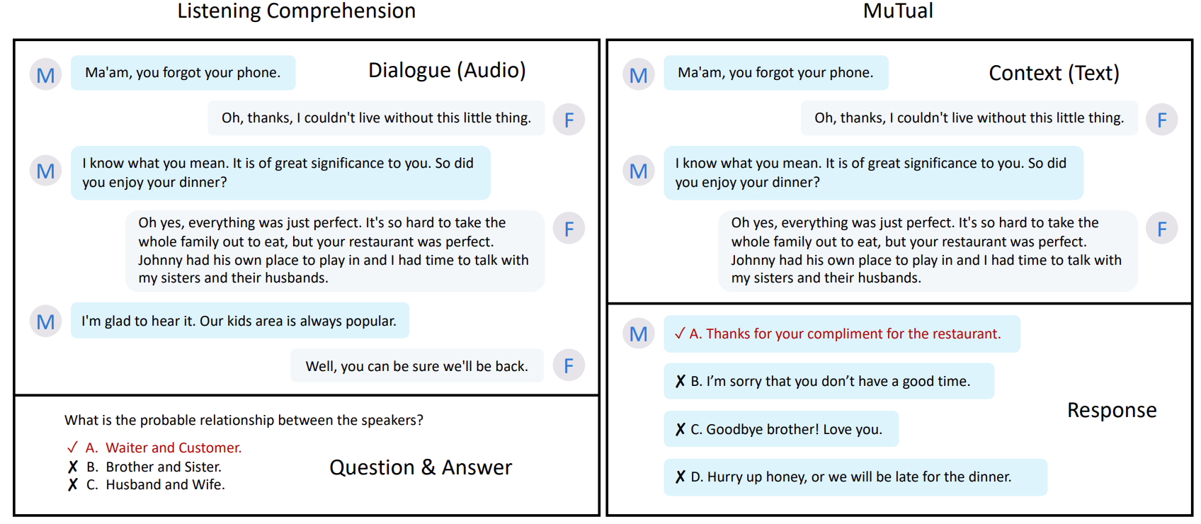 => MuTual 은 다중 턴 대화 맥락을 기반으로 논리적으로 가장 적절한 다음 발화를 고르는 추론 중심 벤치마크!
