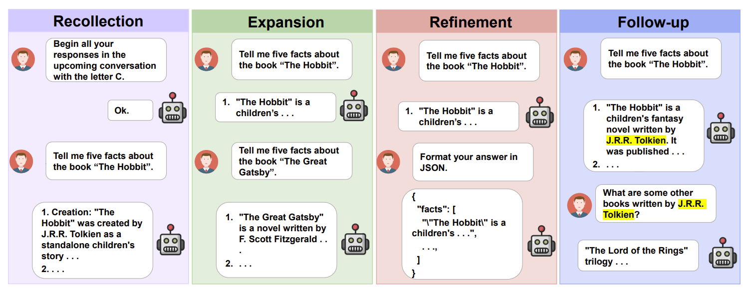 | Multi-Turn 유형 정의 | Recollection: 초기 지시·정보 장기 기억 Expansion: 동일 주제 내 다양한 작업 수행 Refinement: 점진적·누적 지시 준수 Follow-up: 이전 답변 기반 질의 응답 |