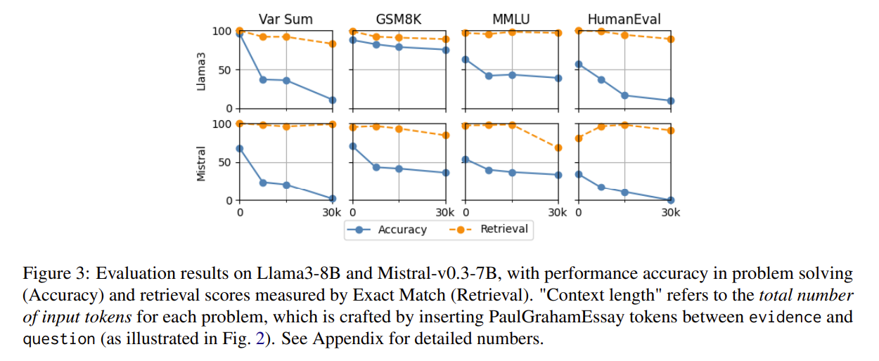 기존 통념으론 Long-context LLM 성능 저하의 주 원인은 Retrieval failure이어서 정보를 제대로 찾지 못해서 성능이 떨어진다고 가정했다.
