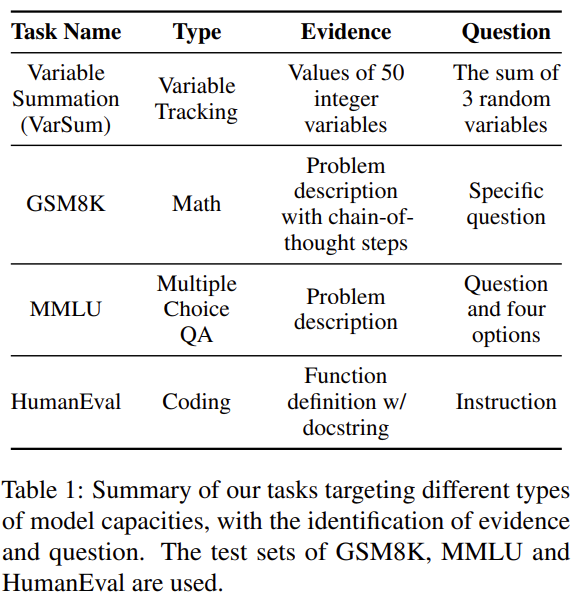 | 사용 태스크 | VarSum (synthetic), GSM8K (math), MMLU (QA), HumanEval (coding) |