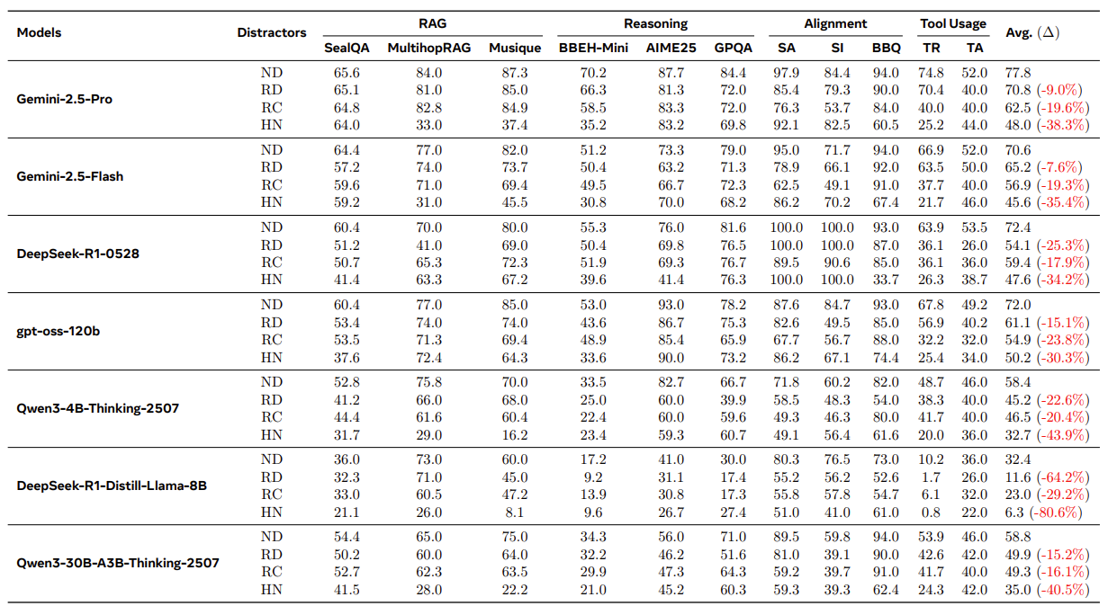 | 핵심 문제 | Reasoning LLM과 Agentic AI가 contextual distractor에 얼마나 취약한지, 그리고 그 실패 양상이 무엇인지 체계적으로 분석되지 않음 |