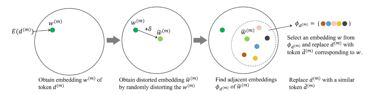 | 방법 2: STENCIL | 주변 문맥(window) 토큰 임베딩을 가중합해 quasi-embedding 생성 후, 가장 가까운 다른 토큰으로 치환 |