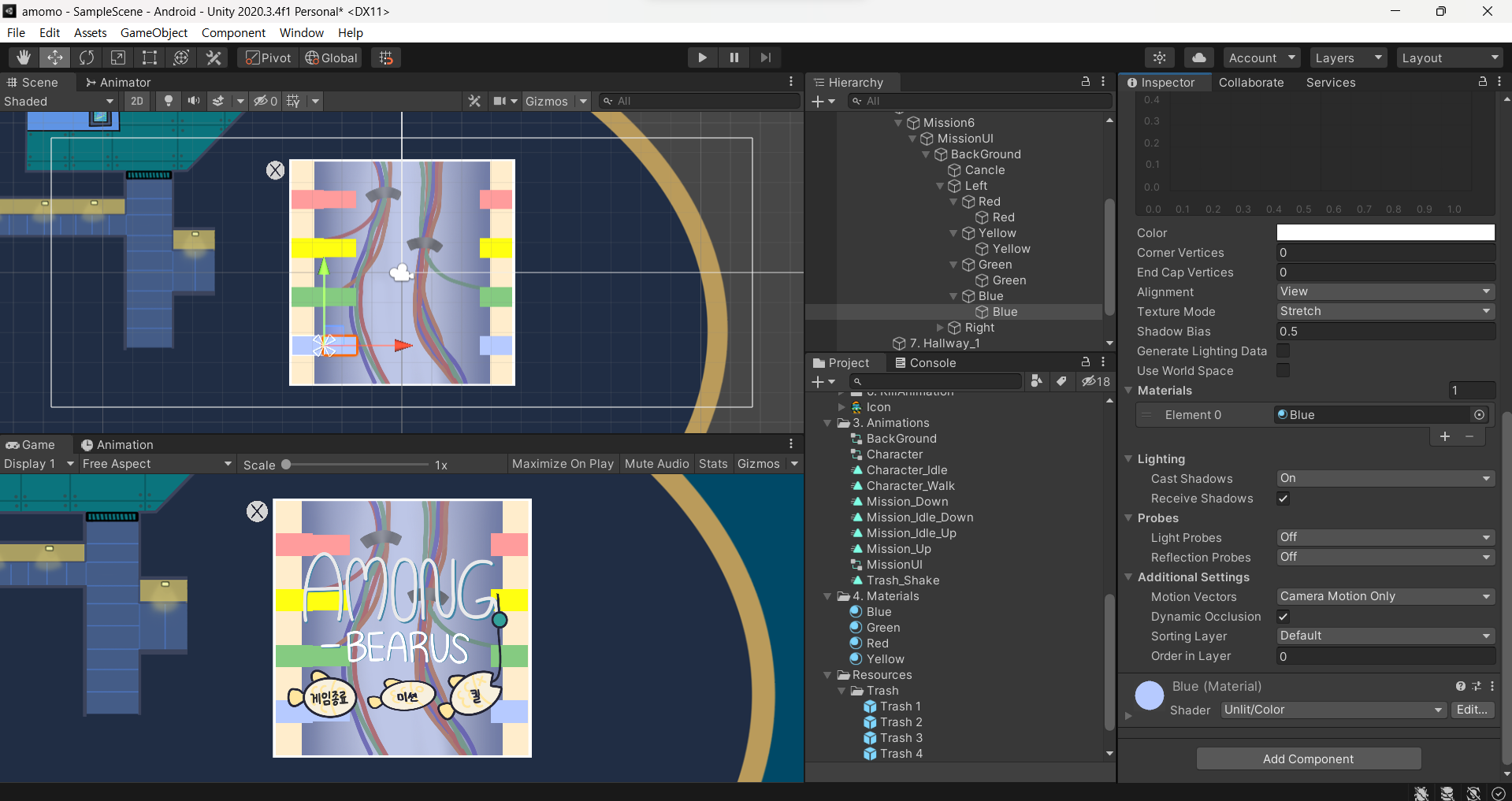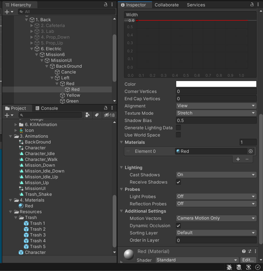 shader를 unit의 color로 바꾸고 색을 스포이드를 통해 빨간 색을 가져온다. 그 후 4개 다 해준다.