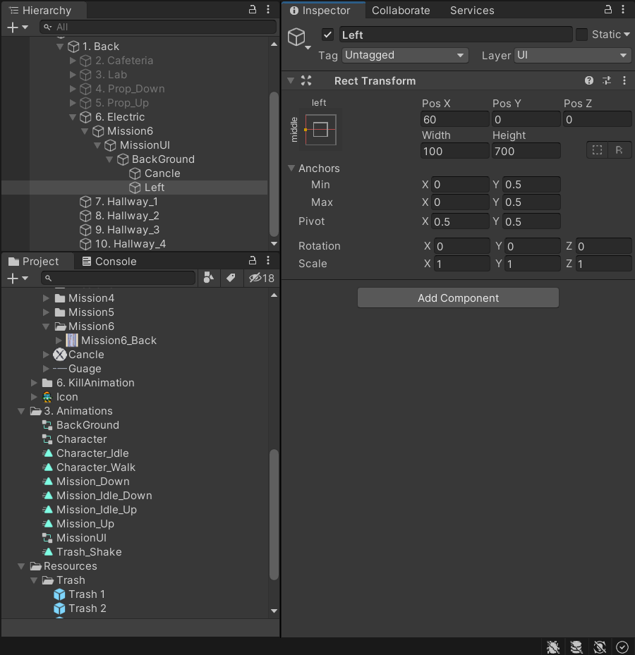 했다면 이제 백그라운드 안에 Empty를 하나 만들고 이름은 Left이다
