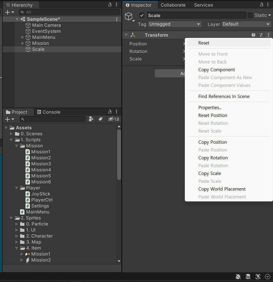 이 Scale는 Mission6 안으로 넣어준다.