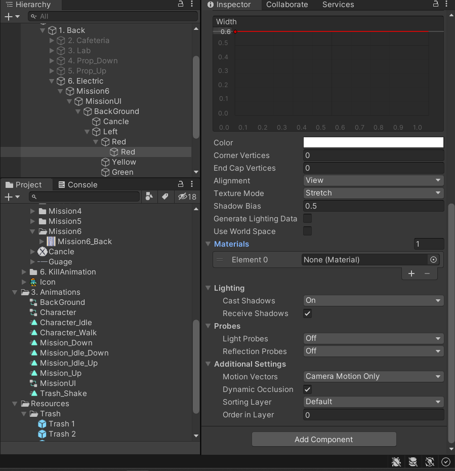 Render Mode를 Screen Space - Cemera로 바꿔준다. 라인 랜더러는 이 설정에서만 보이기 때문!