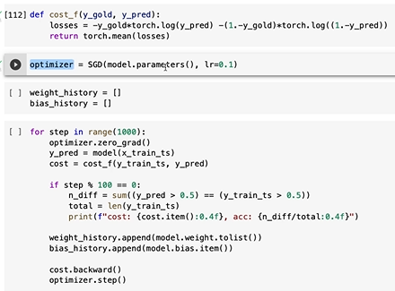 backward 후 step에서 미분, 파라미터 업데이트를 진행하게 된다.