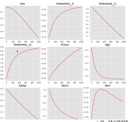 각각의 feature에 따른 그래프가 점점 바뀐다.