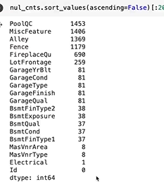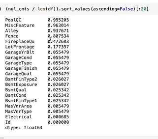 sort후 비어있는 값이 제일 많은 것들 20개만 봤다.