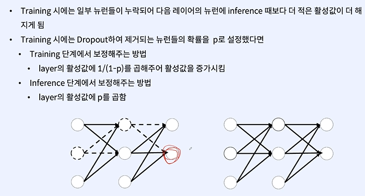 Inference단계에서 p를 곱하는게 아니라 (1-p)를 곱하면 된다.