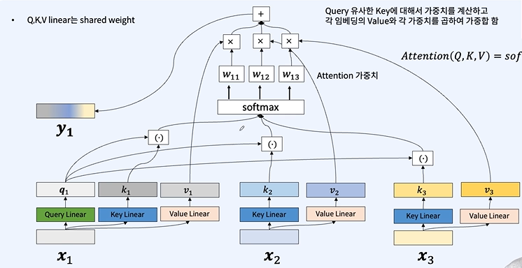 Query Linear와의 유사성을 내적을 통해 계산하고 소프트 맥스를 통해 attention 가중치를 구한다.