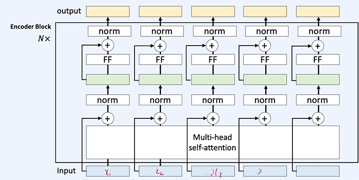 N번 만큼 인코더 블록을 여러번 반복하게 된다.