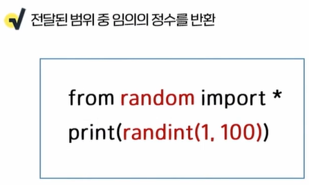 from random import * 이렇게 작성하면 random randint라고 작성 안하고 바로 randint로 작성해도 된다.