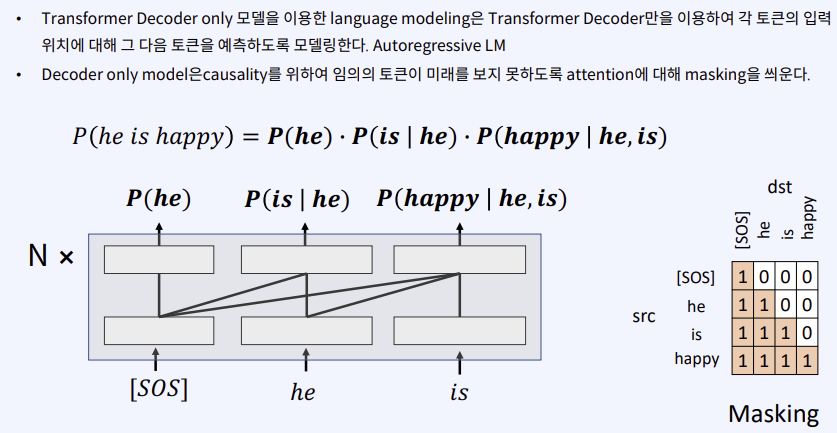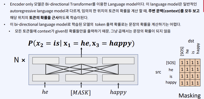 마스킹을 이용해 미래의 단어는 확인하지 못한다! 과거의 정보만 확인할 수 있다.