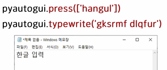 pyautogui.press(['hangul'])# 한글 모드 전환은 특별 !