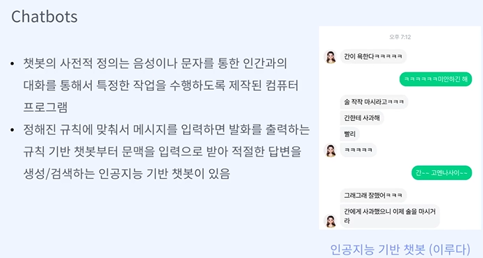 이루다 - 일상 대화 -> 자연스럽게 흘러가기만 하면 된다.