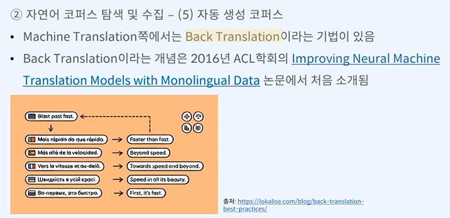 원본문장 -> 소스문장으로 번역하는 모델을 만들 때 소스문장이 더 많다면 소스문장을 원본 문장으로 번역한 것을 다시 학습에 사용하기